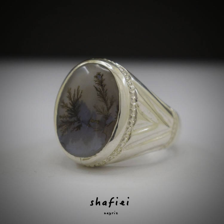 انگشتر نقره مردانه دستساز با سنگ شجر