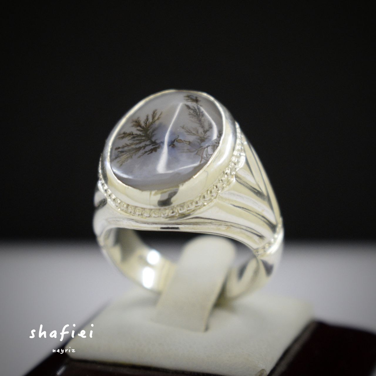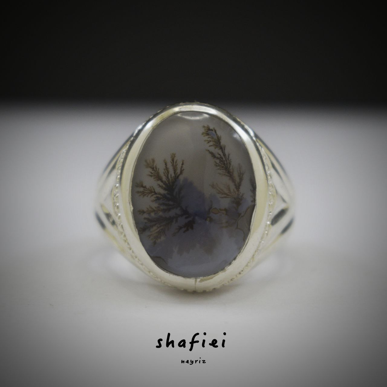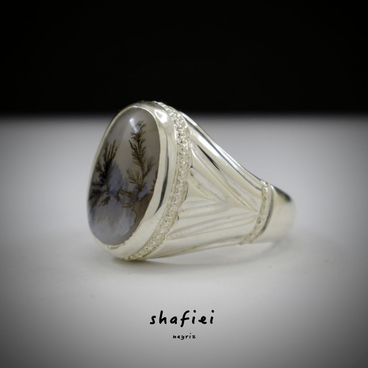 انگشتر نقره مردانه دستساز با سنگ شجر