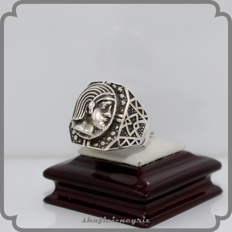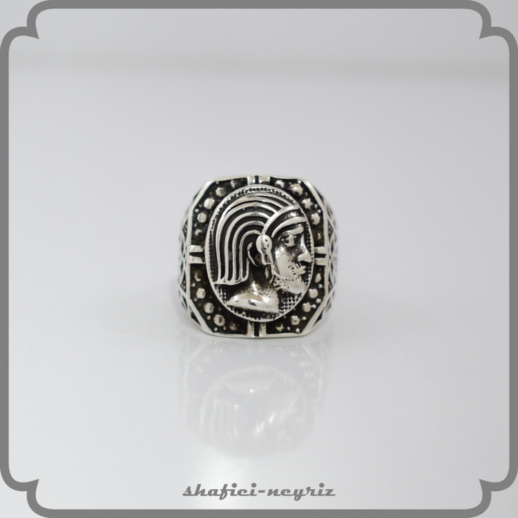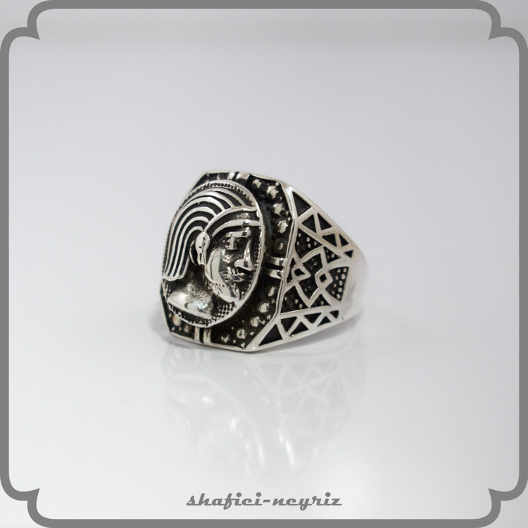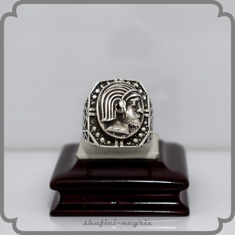 این انگشتر مردانه با طرح الهامگرفته از چهره و نمادهای منسوب به کوروش کبیر، انتخابی خاص برای آقایانیست که به هویت ایرانی و شکوه باستان علاقه دارند. طراحی برجسته و با جزئیات دقیق، حس اقتدار و وقار را به استایل شما اضافه میکند.