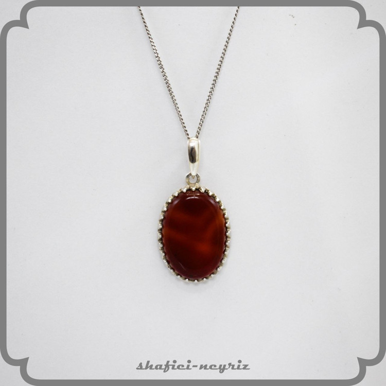 آویز نقره زنانه و مردانه قاب نقره با سنگ عقیق قرمز