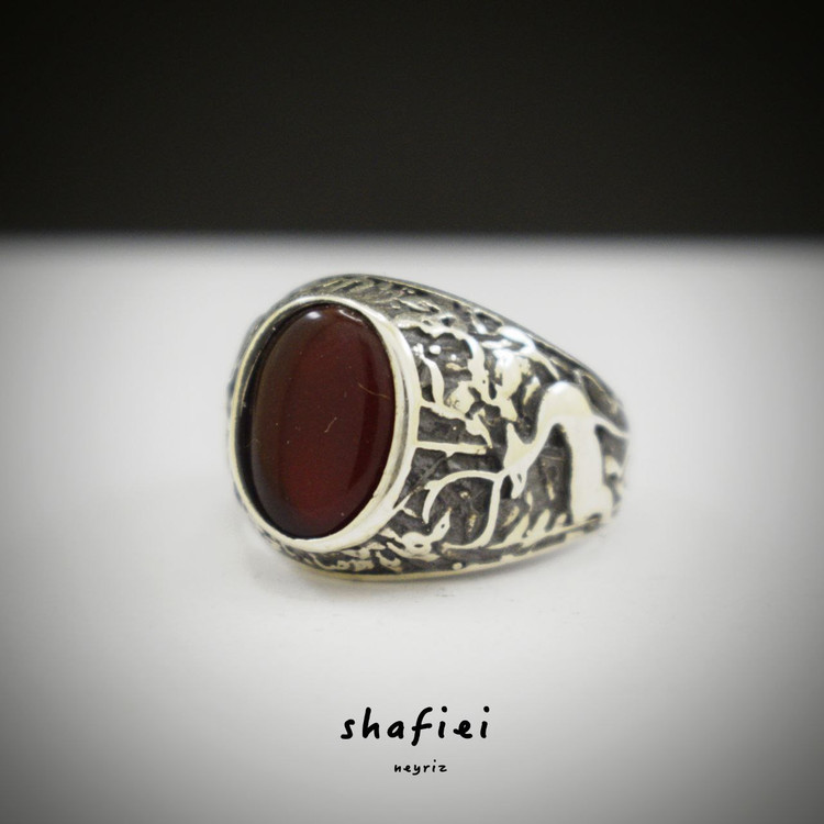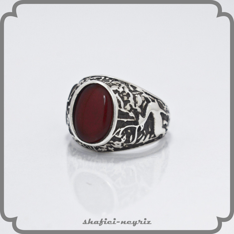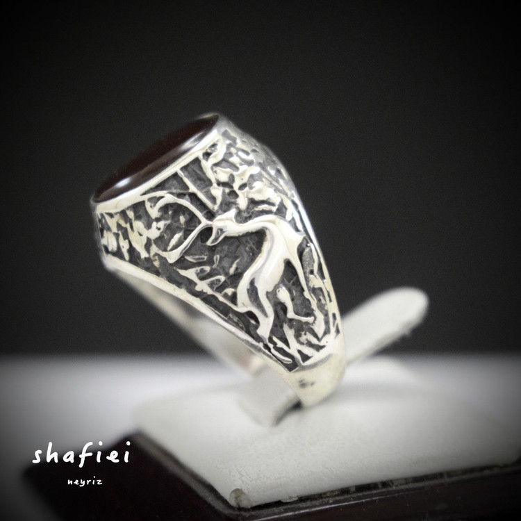 انگشتر مردانه نقره طرح ضامن آهو