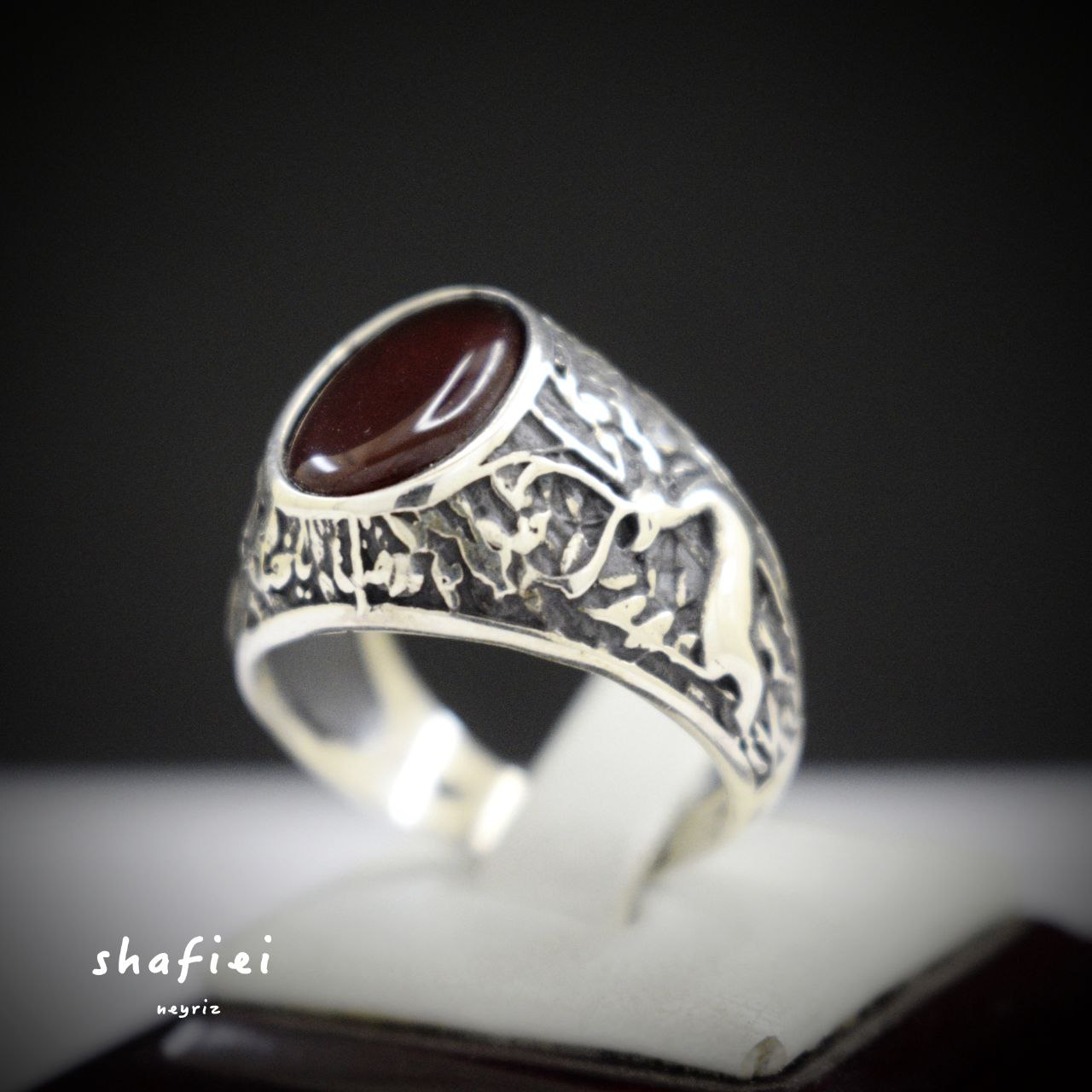 انگشتر مردانه نقره طرح ضامن آهو