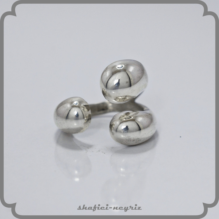 این انگشتر با طراحی خاص و گویهای براق، یه انتخاب متفاوت و چشمگیره برای کسانیه که دنبال زیورآلات خاص و مدرن هستن. فرم باز و ترکیب سه گوی نقرهای جلوهای مینیمال اما جذاب بهش داده و با توجه به فری سایز بودن گزینه مناسبی برای هدیه دادن هست.
