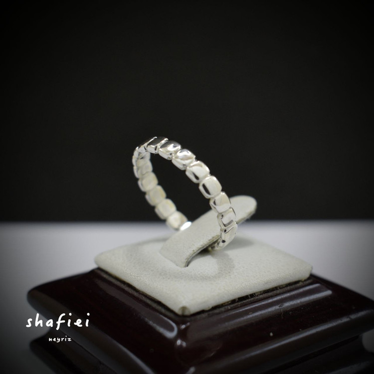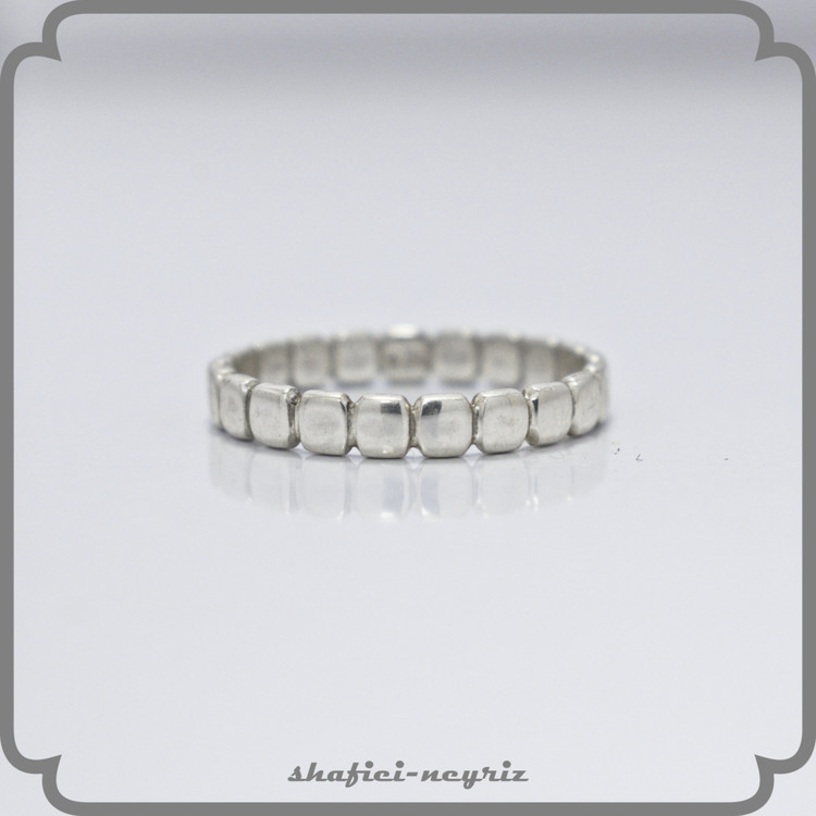 این انگشتر ظریف با طراحی شبیه به مربع های کوچک نقرهای، یه انتخاب فوقالعاده برای کسانیه که دنبال یه کار ساده، سبک و خاص هستن. فرم متفاوت و بافت منظم این مدل باعث شده هم بهتنهایی زیبا باشه، هم در کنار بقیه انگشترها خوشاستایل بشینه.